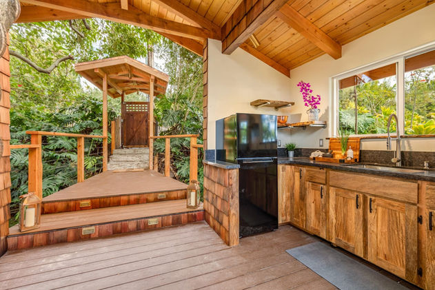 Welcome to the serenity of our bespoke treehouse, where refined comfort and luxury blend seamlessly with the magic of your childhood dreams. Located in the lush lower Kaloko rainforest, this unique retreat is perched on a 3-acre tropical fruit farm, offering an abundance of seasonal produce and fresh, organic chicken eggs throughout the year. With expansive floor-to-ceiling pocket doors that frame breath-taking panoramic ocean views and a private cedar wood spa for ultimate relaxation, our treehouse promises an unparalleled holistic getaway, perfect for rejuvenating the body, mind, and spirit.